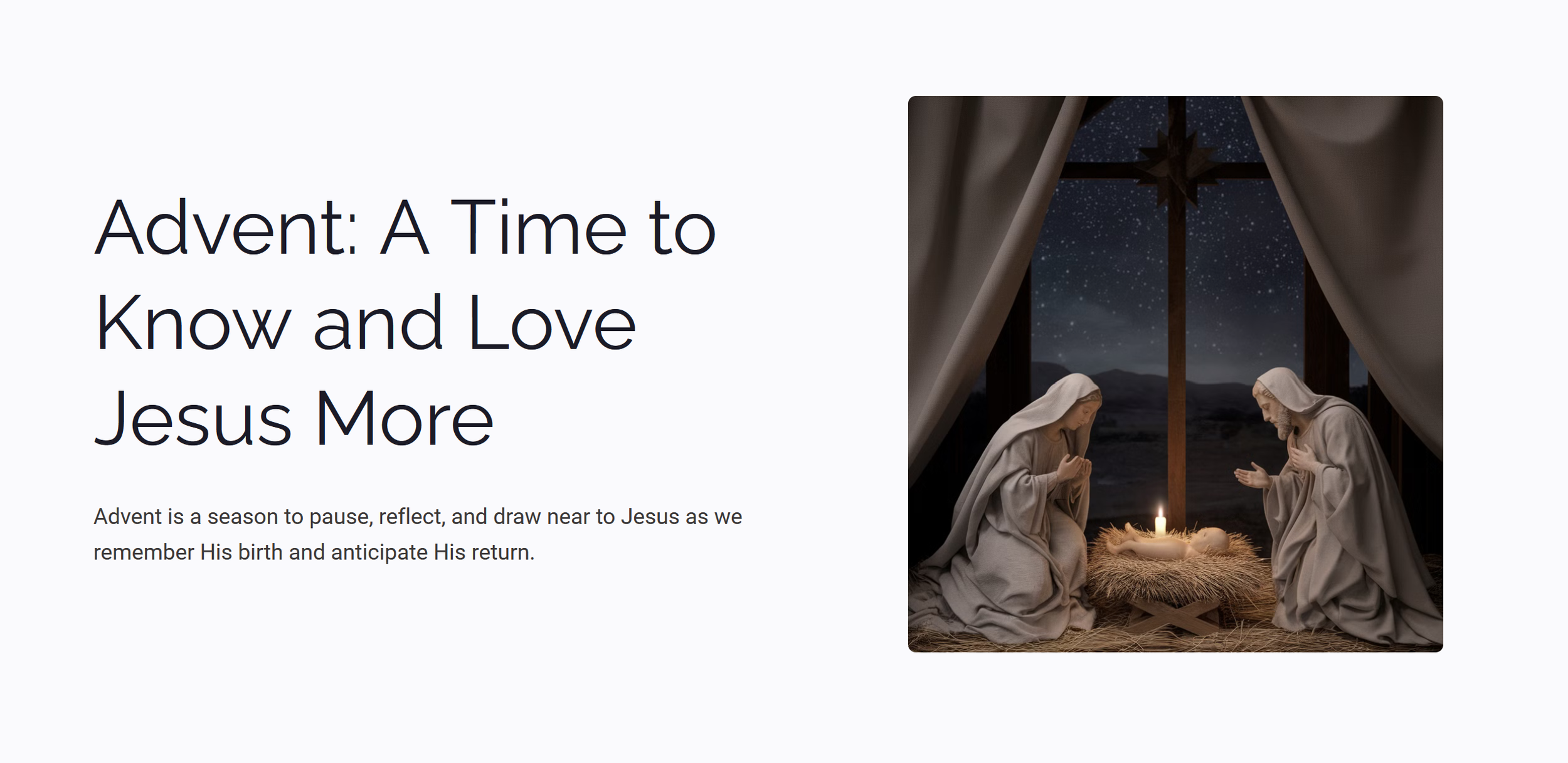 Advent is here—a season to stop, to pause, and to draw near to the heart of Jesus. It's not just a countdown to Christmas; it's an invitation to embrace the deeper story of God's love—a love that pursues us across time, through promises, stories, and ultimately, through the birth of Jesus. During Advent, we reflect on the profound mystery of God coming to restore all things through His Son.